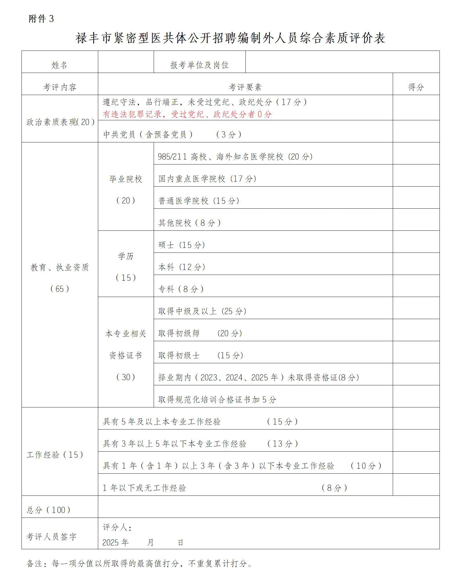3.祿豐市緊密型醫(yī)共體公開招聘編制外人員綜合素質評價表