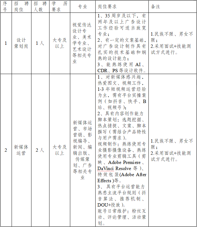 2.聘用方式:經(jīng)考察合格后,由澄江市啟澄人力資源有限責(zé)任公司與聘用人員簽訂勞動(dòng)合同,派遣至澄江市文化旅游投資開發(fā)有限責(zé)任公司數(shù)字傳媒分公司工作。