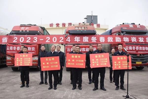 12月22日,省應急管理廳、國家糧食和物資儲備局云南局、省糧食和物資儲備局聯(lián)合舉行2023—2024年度省級冬春救助物資發(fā)放儀式,向全省各州(市)發(fā)放棉衣、棉被、毛毯等冬春救助物資105792套(件)。