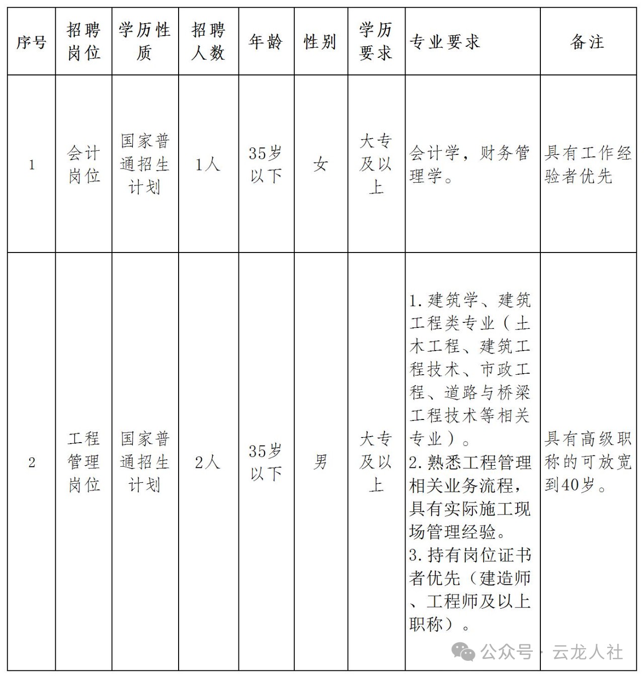 (三)公開招聘的有關(guān)信息通過“云龍關(guān)注”微信關(guān)注號(hào)向社會(huì)發(fā)布。因查看其他渠道所獲取的錯(cuò)誤信息造成報(bào)名失敗的,由報(bào)考人員自行負(fù)責(zé)。
